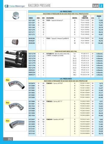 RACCORDI A PRESSARE IN ACCIAIO INOX AISI 316L (PROFILO B/V)